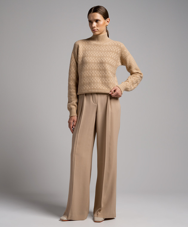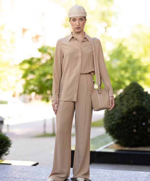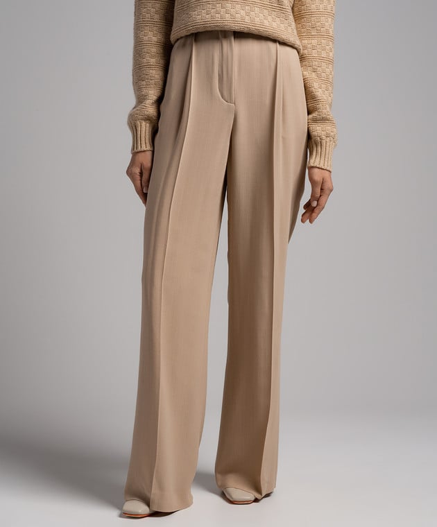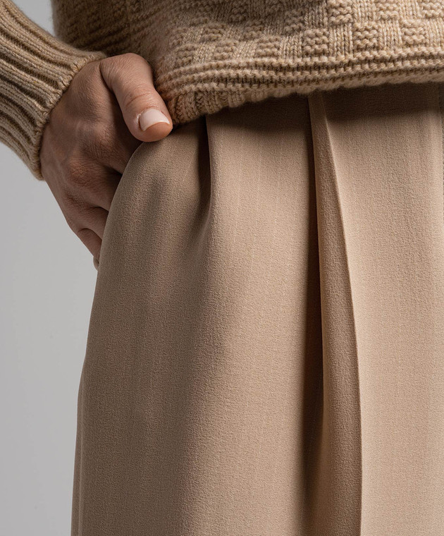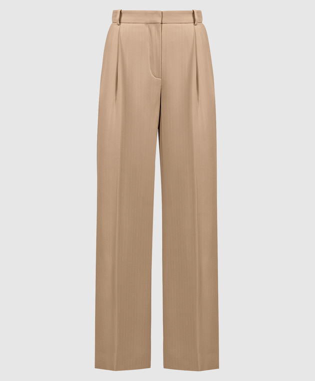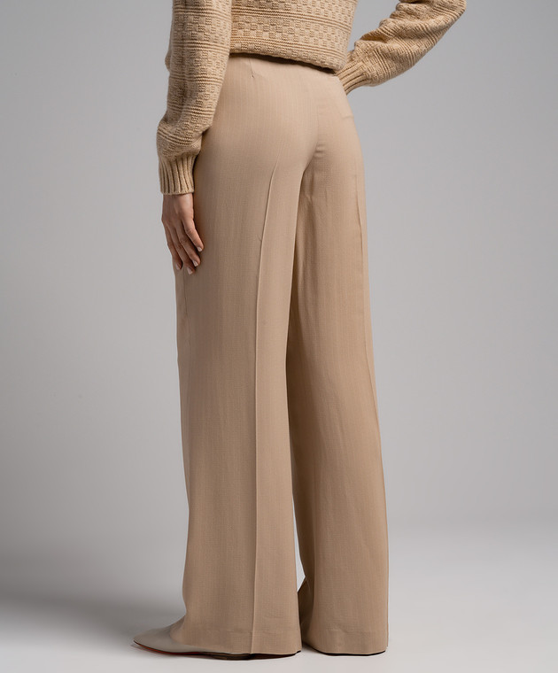 Бежеві штани із шовку в смужку
