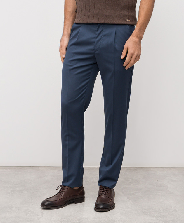 Штани з вовни синього кольору з логотипом