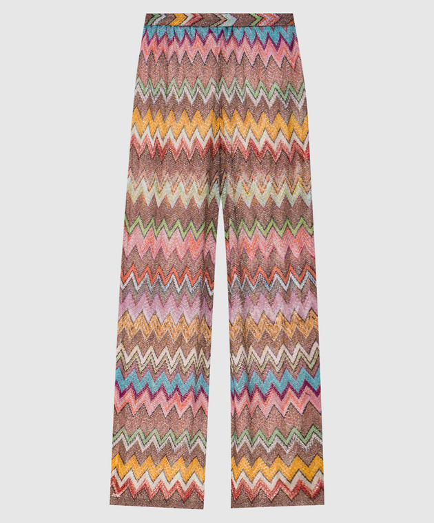 Штани в брендовий візерунок з люрексом