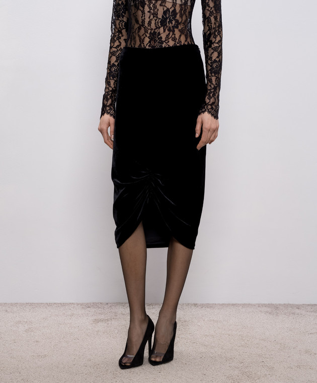 Чорна оксамитова спідниця з шовком