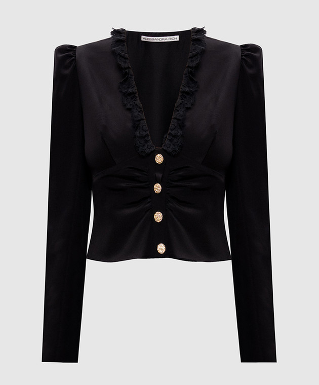 Чорна блуза із шовку у візерунок