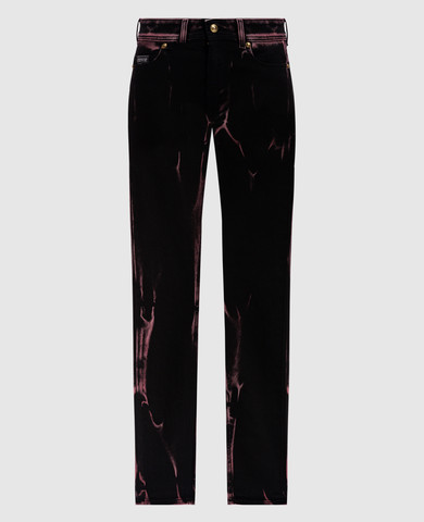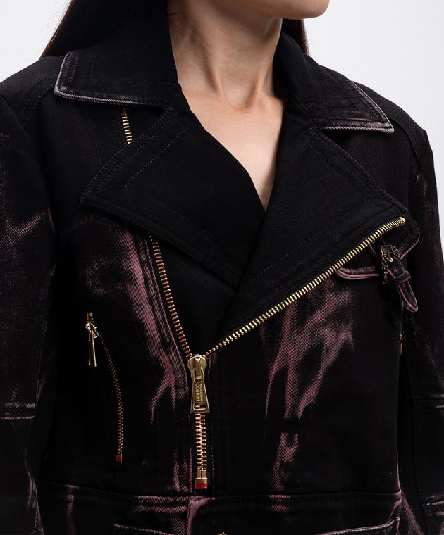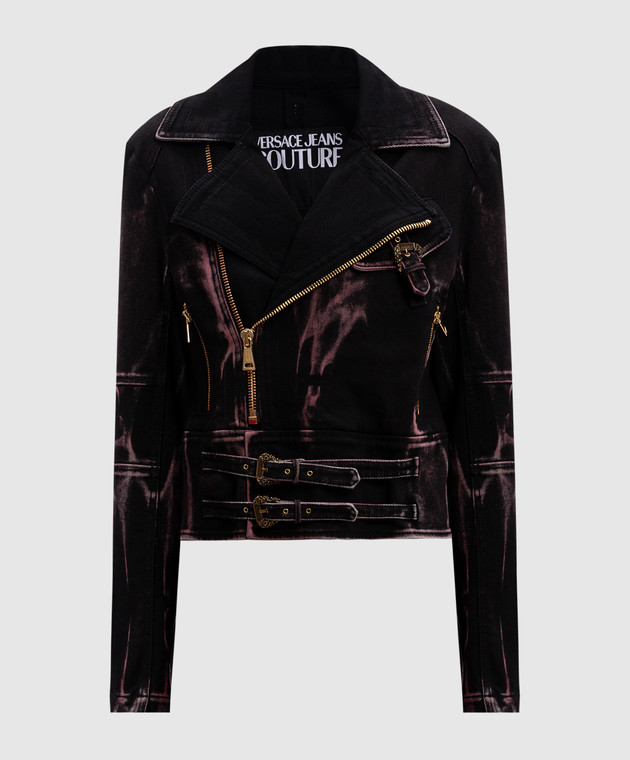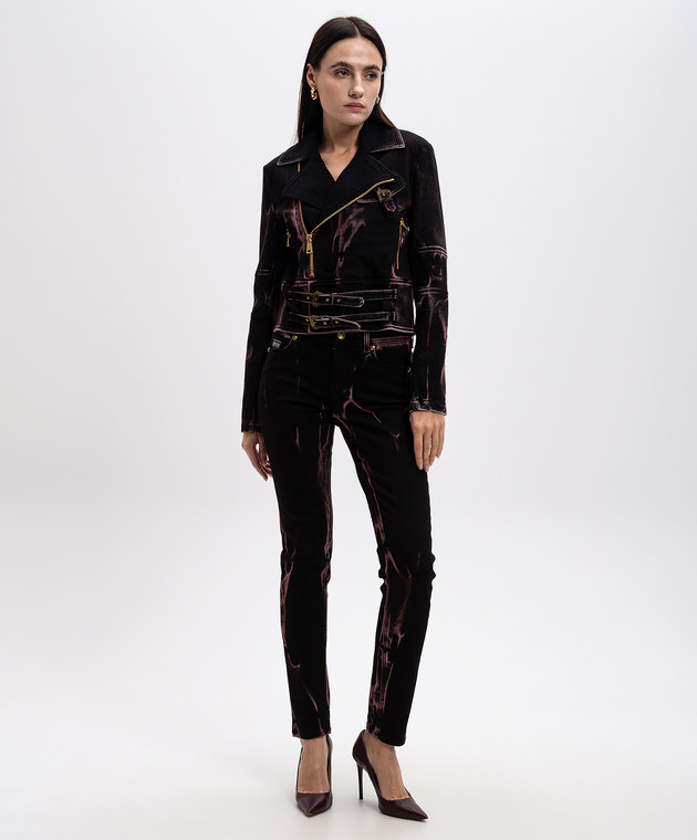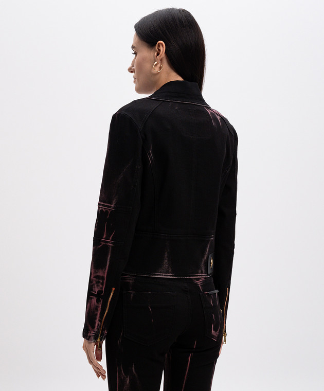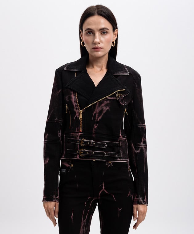 Чорна джинсова куртка в стилі косухи з мармуровим ефектом