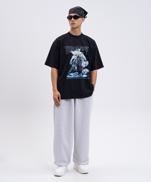Чорна футболка з брендовим принтом