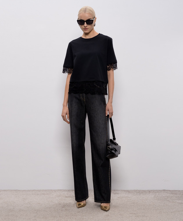 Чорна футболка з мереживом