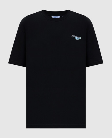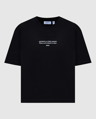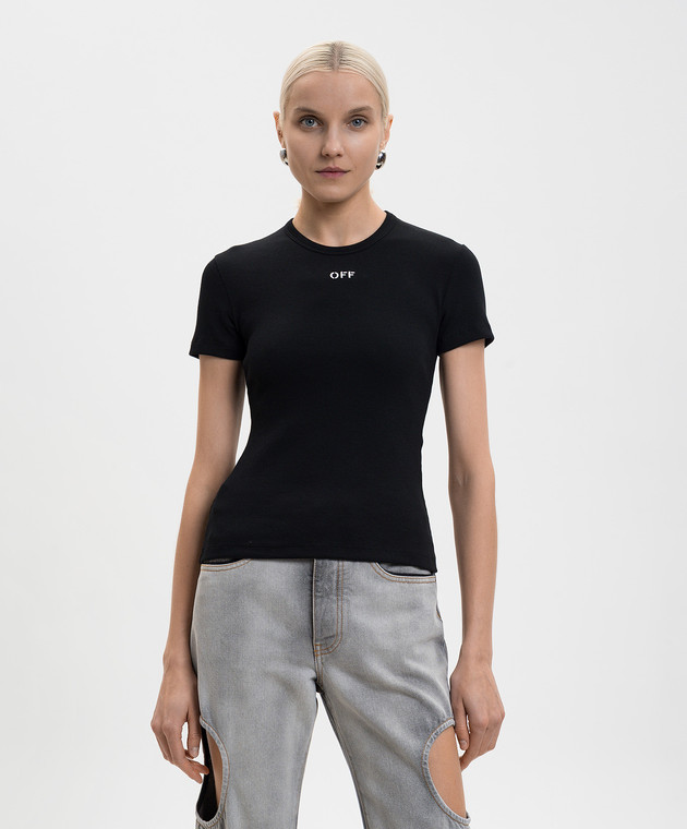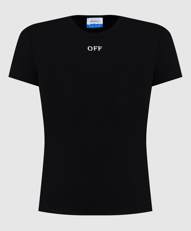 Чорна футболка в рубчик з логотипом OFF