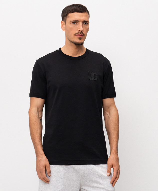 Чорна футболка з нашивкою монограми