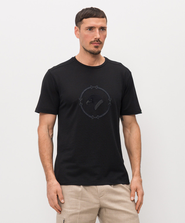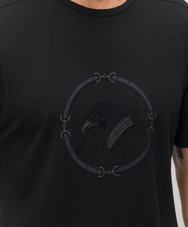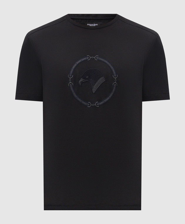 Чорна футболка з вишивкою емблеми