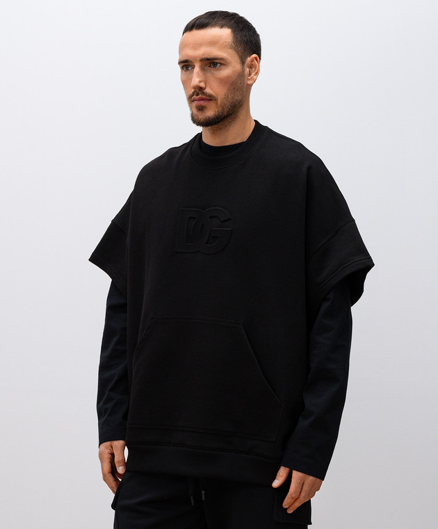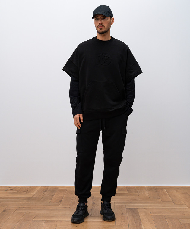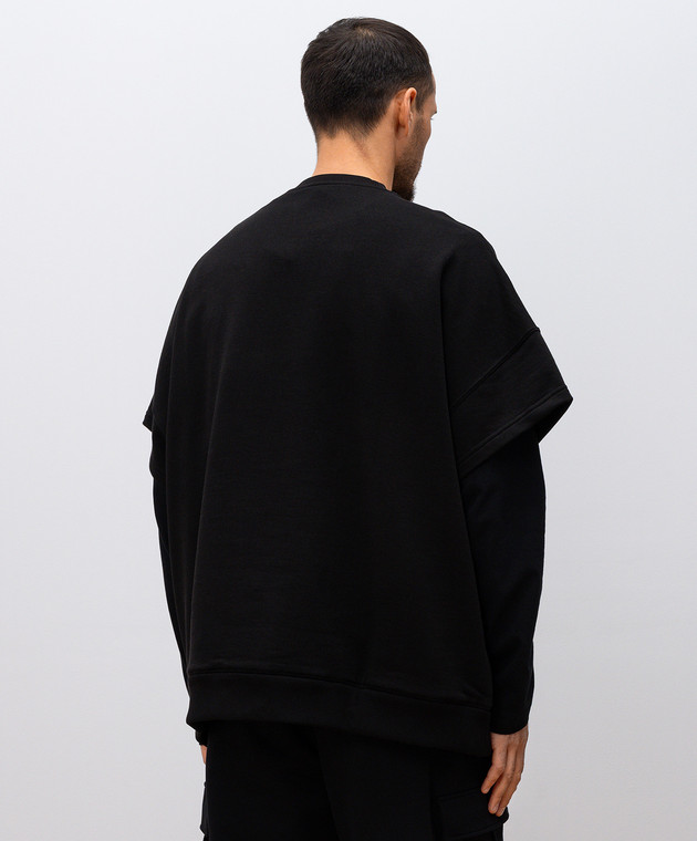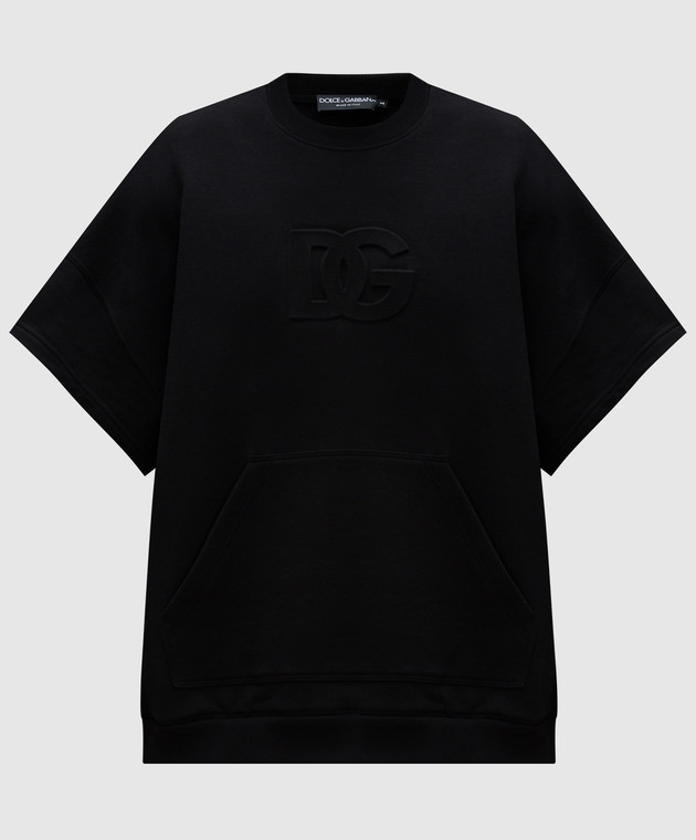 Чорна футболка в стилі світшоту з фактурною монграмою логотипа