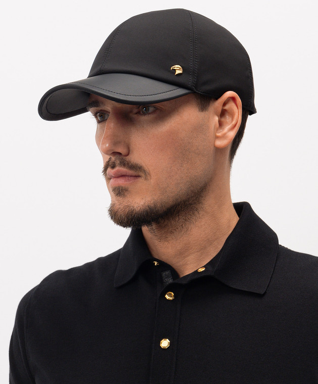 Чорна кепка зі шкіряним козирком