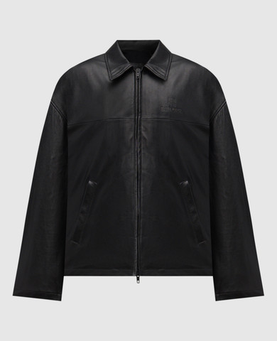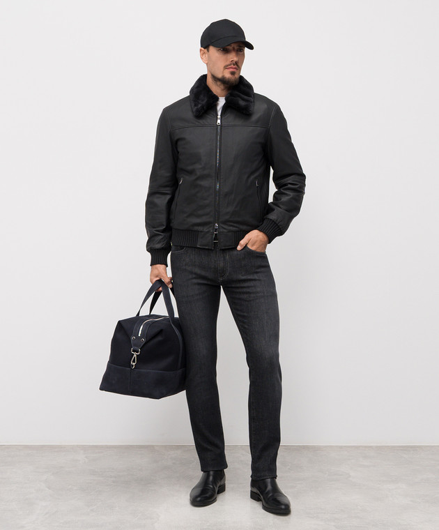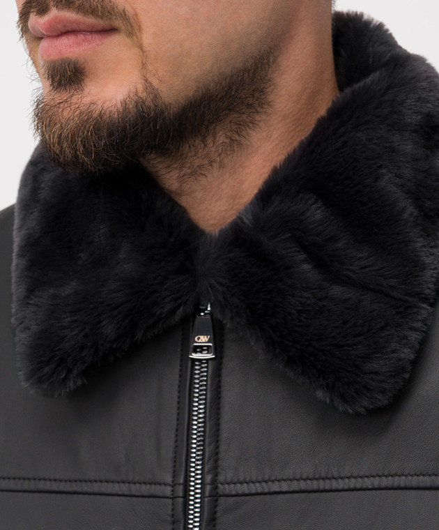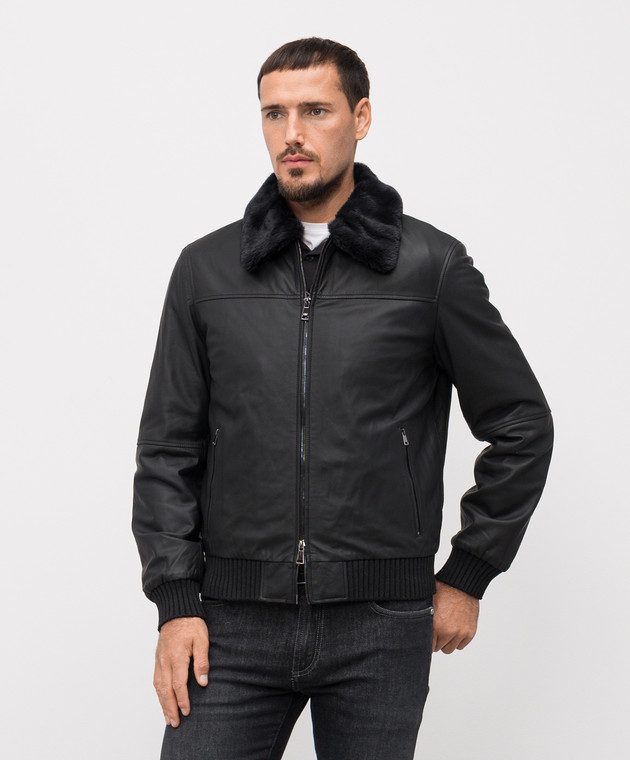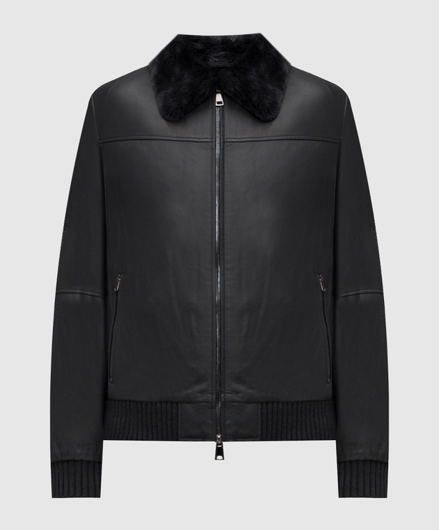 Чорна шкіряна куртка з хутром