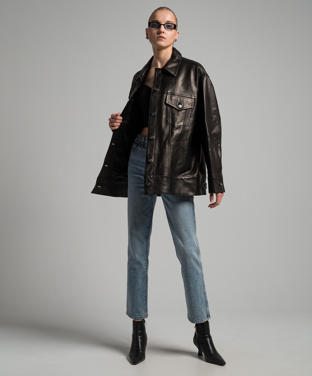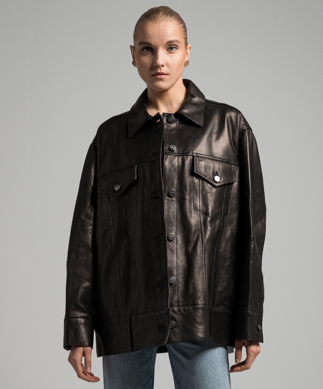 Чорна шкіряна куртка Grizzo