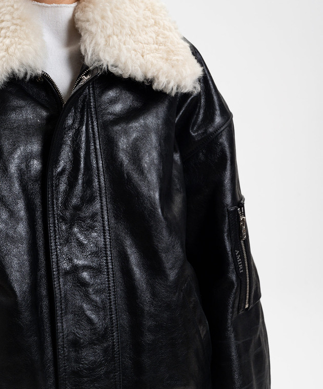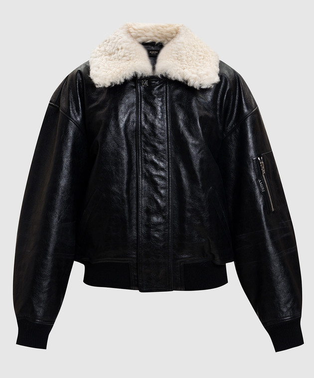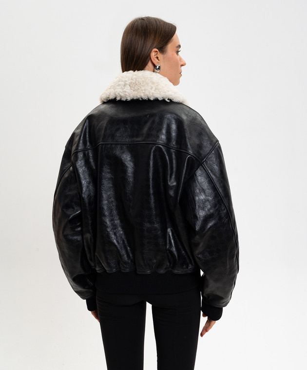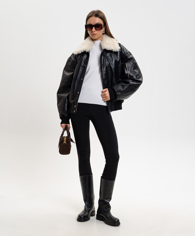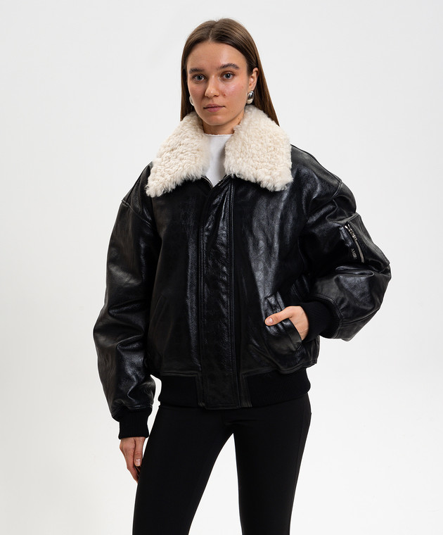 Чорна шкіряна куртка з хутром