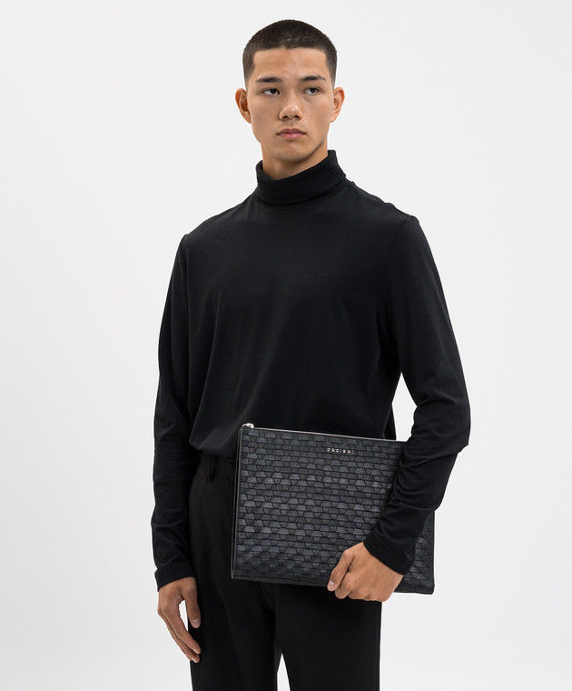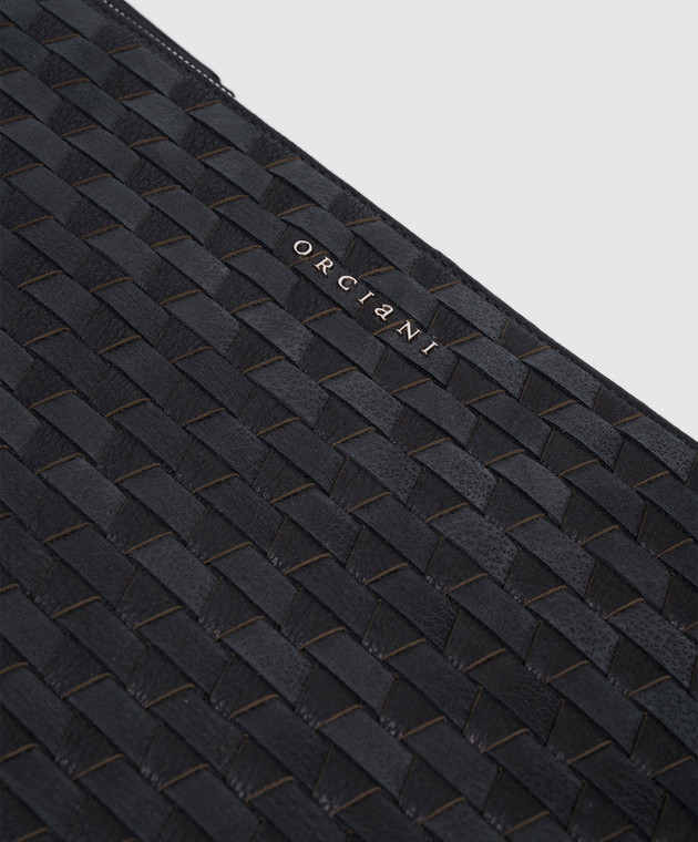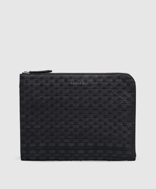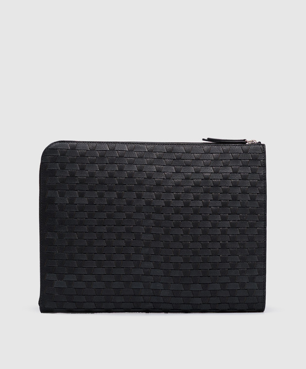 Чорна шкіряна плетена папка для документів