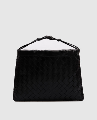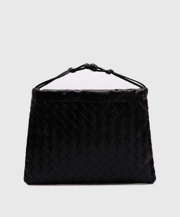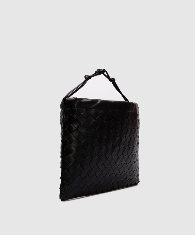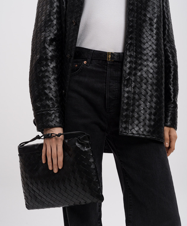 Чорна шкіряна плетена сумка-кісет з плетінням