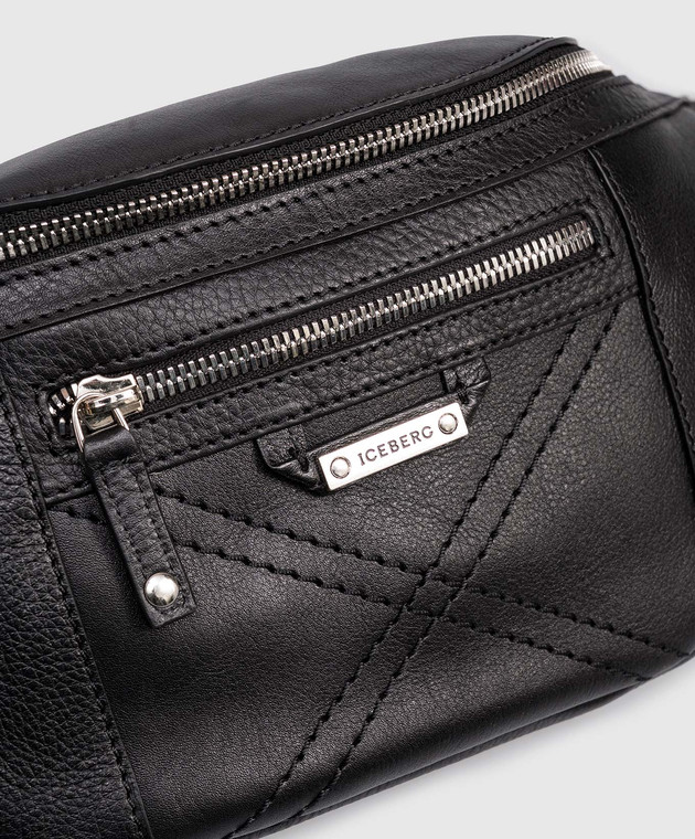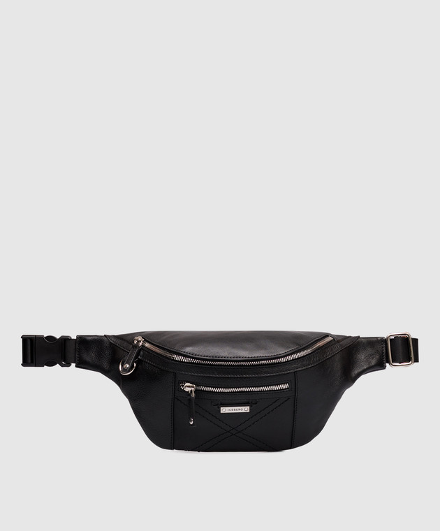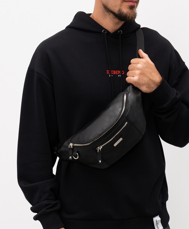 Чорна шкіряна поясна сумка з логотипом