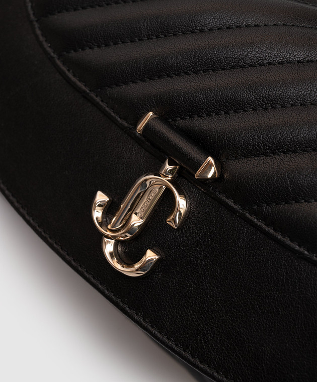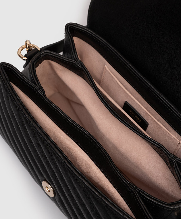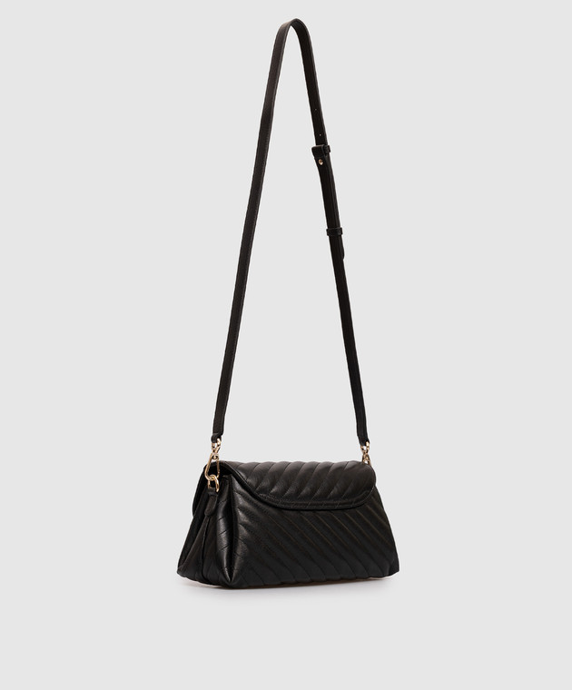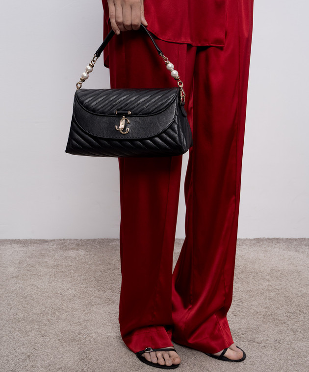 Чорна шкіряна стьобана сумка з перлинами