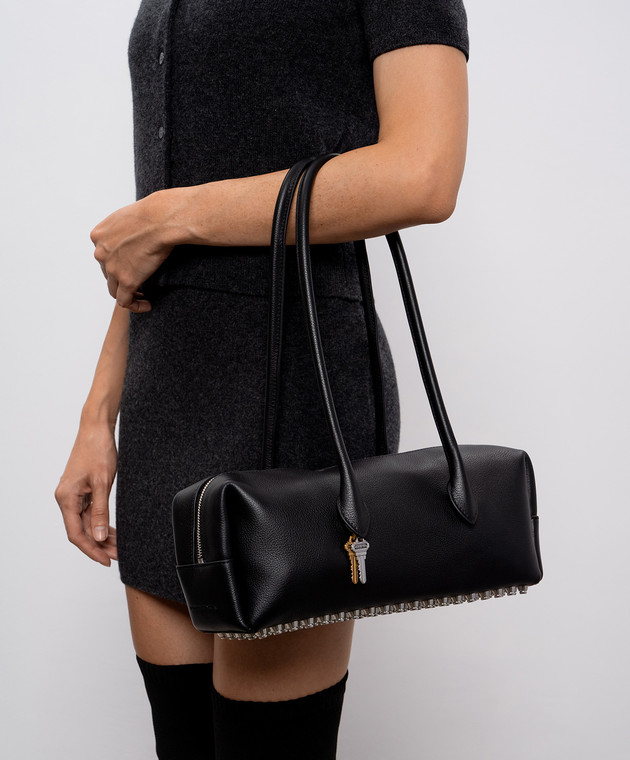 Чорна шкіряна сумка-багет Roux