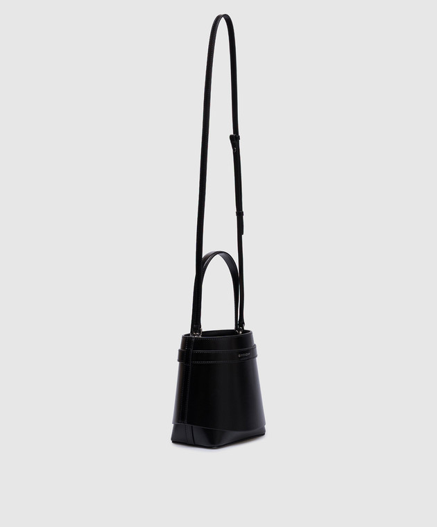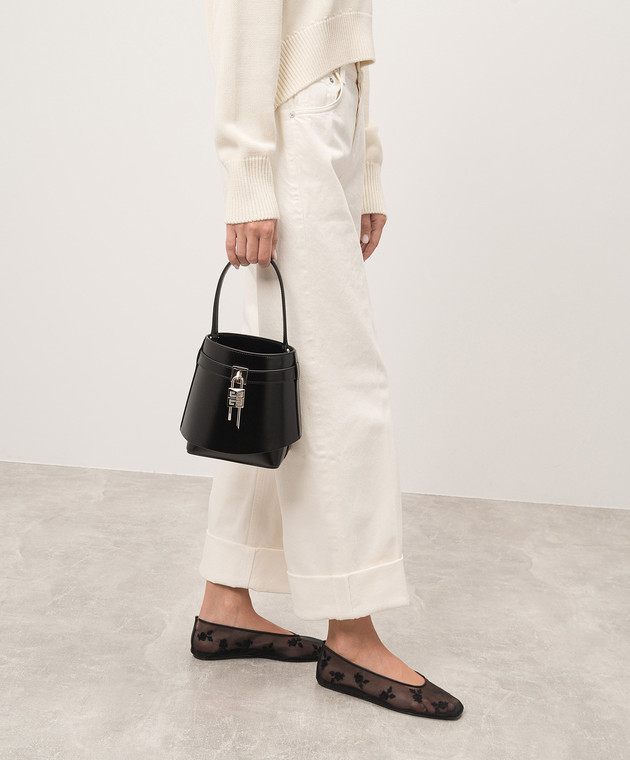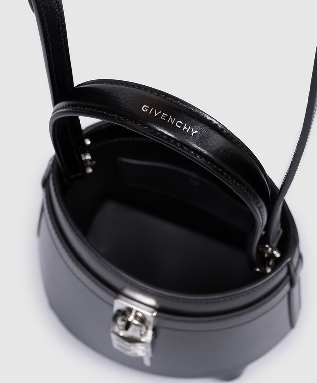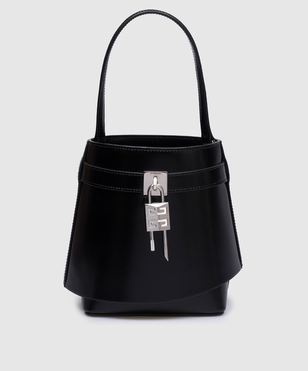 Чорна шкіряна сумка бакет-бег Shark Lock
