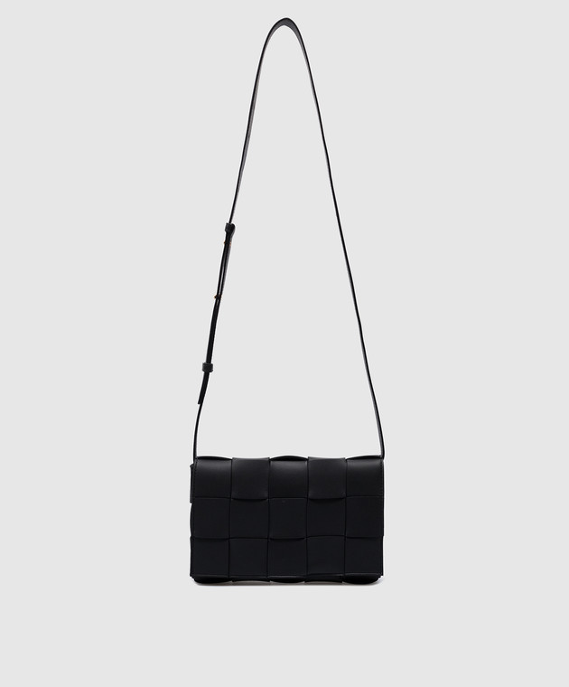 Чорна шкіряна сумка Cassette з плетінням Intrecciatio