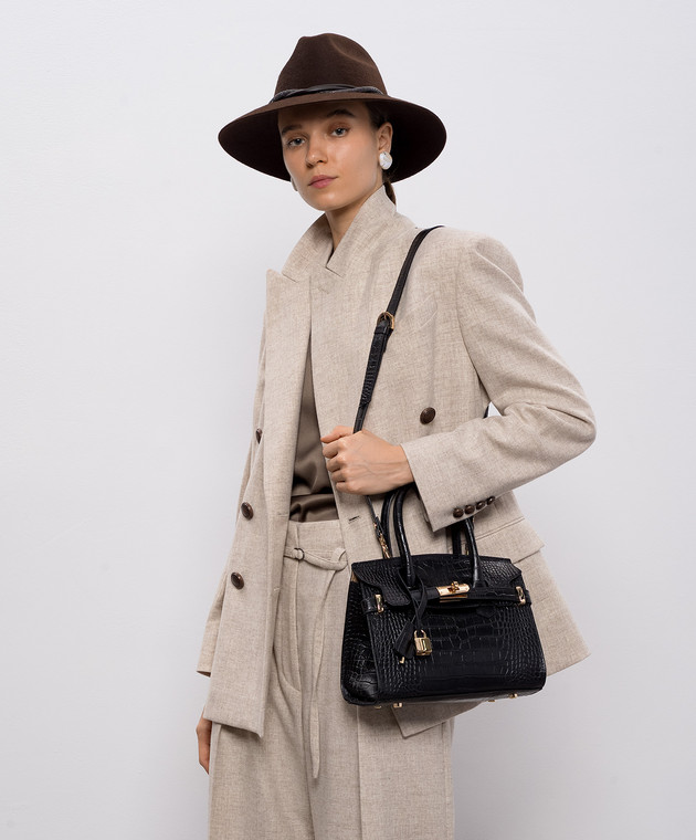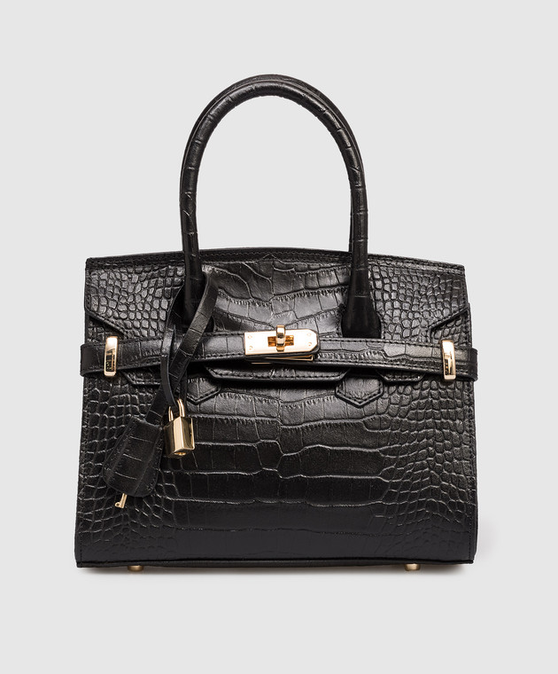 Чорна шкіряна сумка Cocco з тисненням під шкіру крокодила