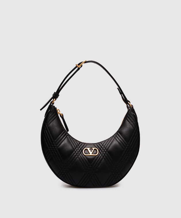 Чорна шкіряна сумка-хобо QUILTIE 67