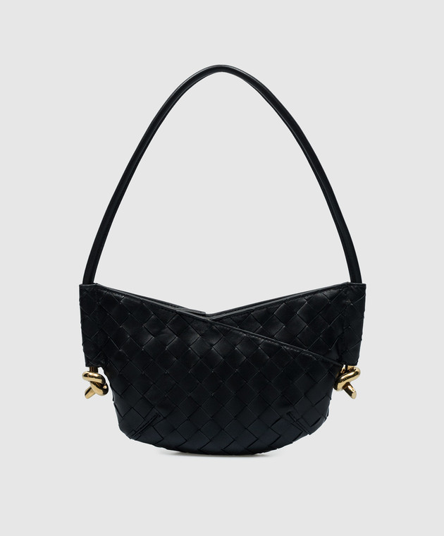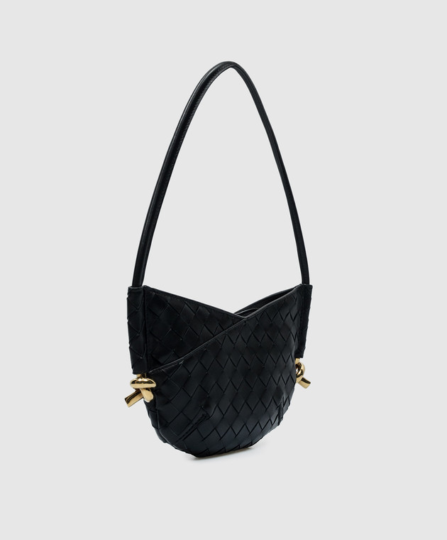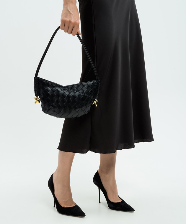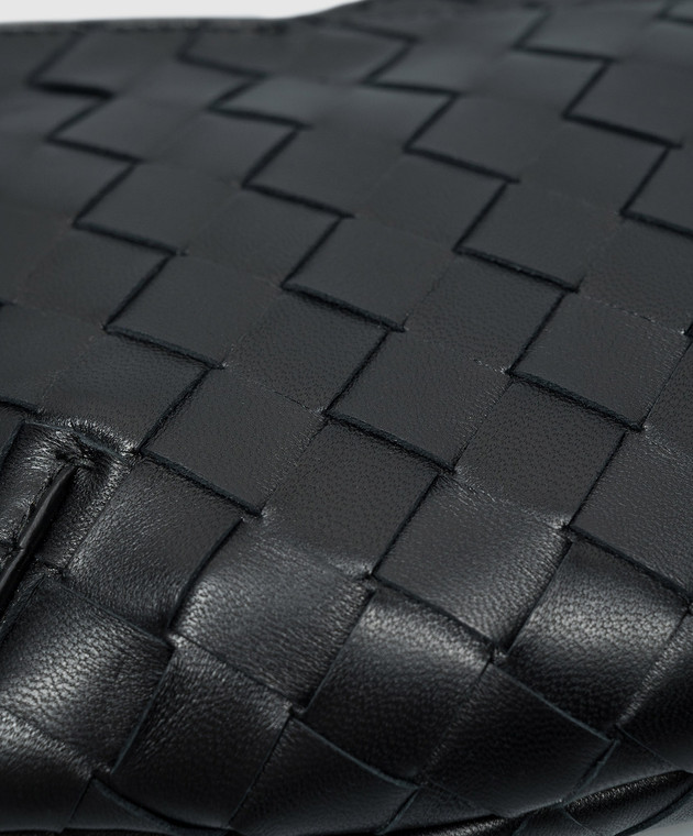 Чорна шкіряна сумка-хобо з плетінням Intrecciato