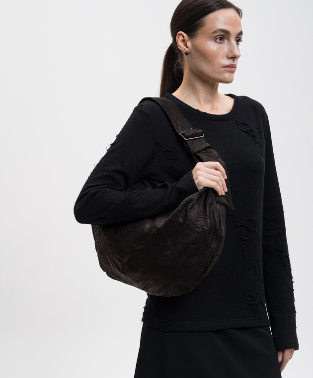 Чорна шкіряна сумка-хобо