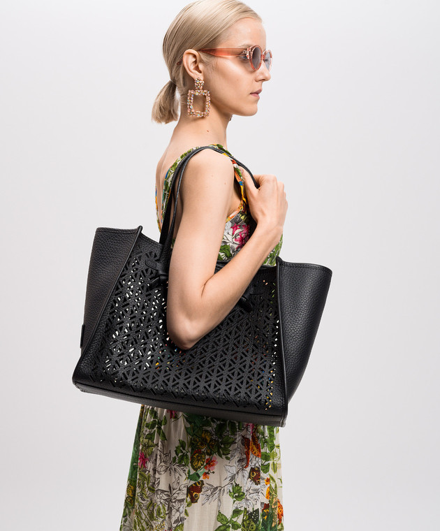 Чорна шкіряна сумка Marcella з ажурним візерунком