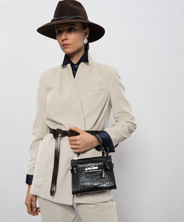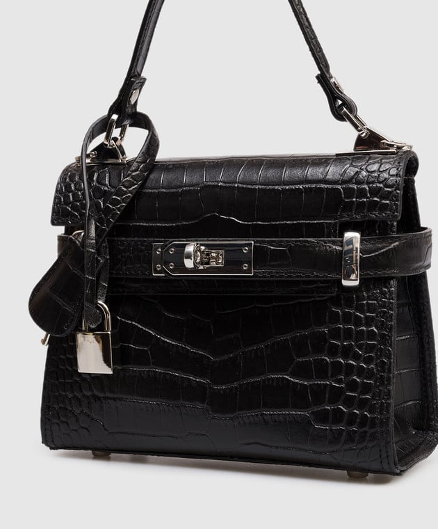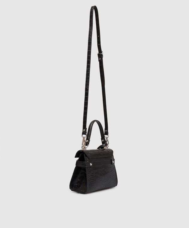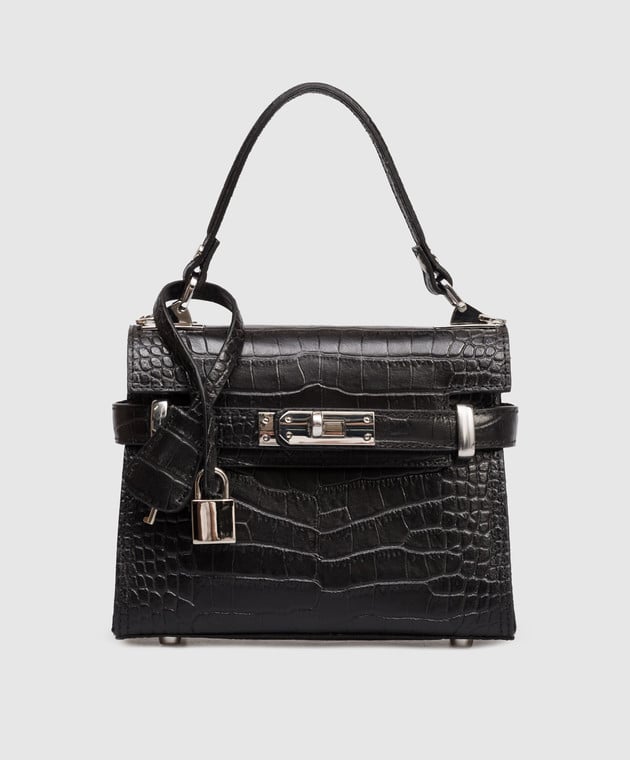 Чорна шкіряна сумка-міні Cocco з тисненням під шкіру крокодила