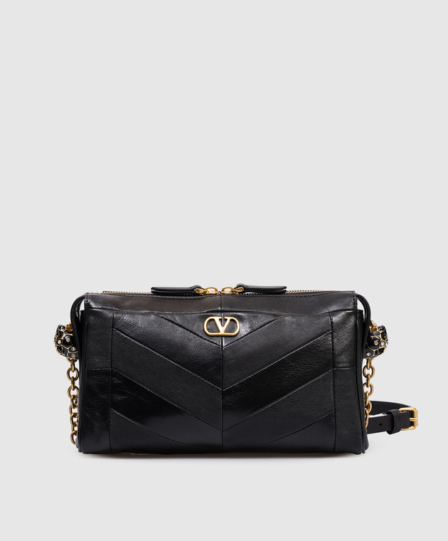 Чорна шкіряна сумка Panthea з кристалами Swarovski