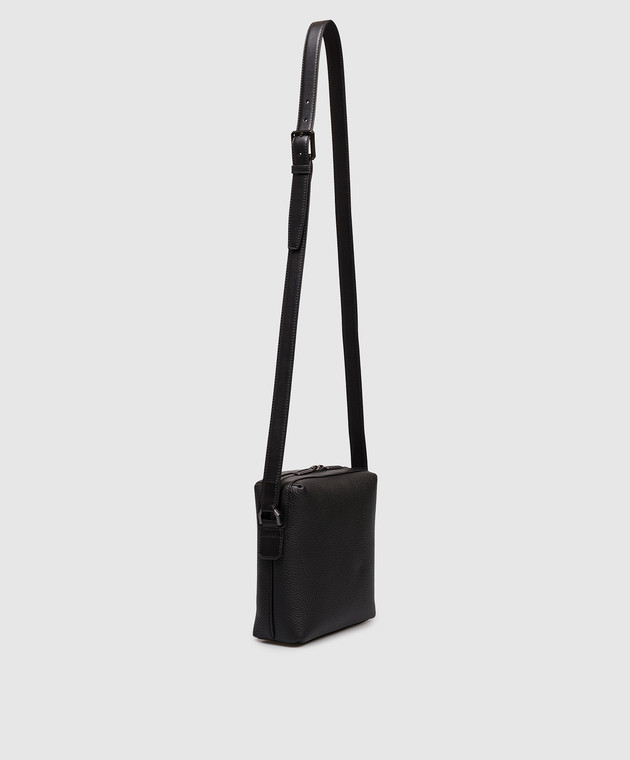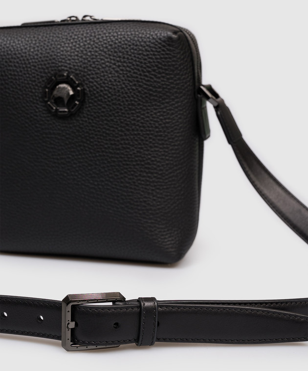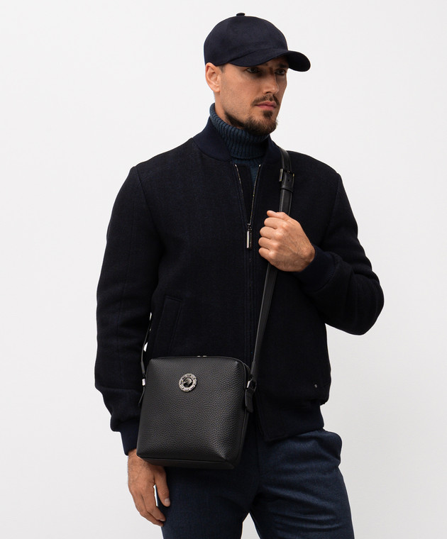 Чорна шкіряна сумка з емблемою з рутенієвим покриттям
