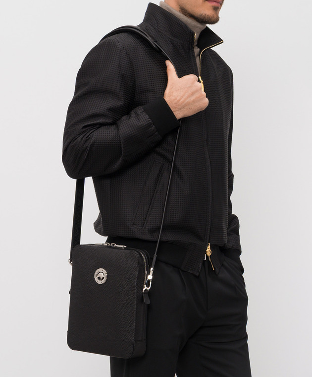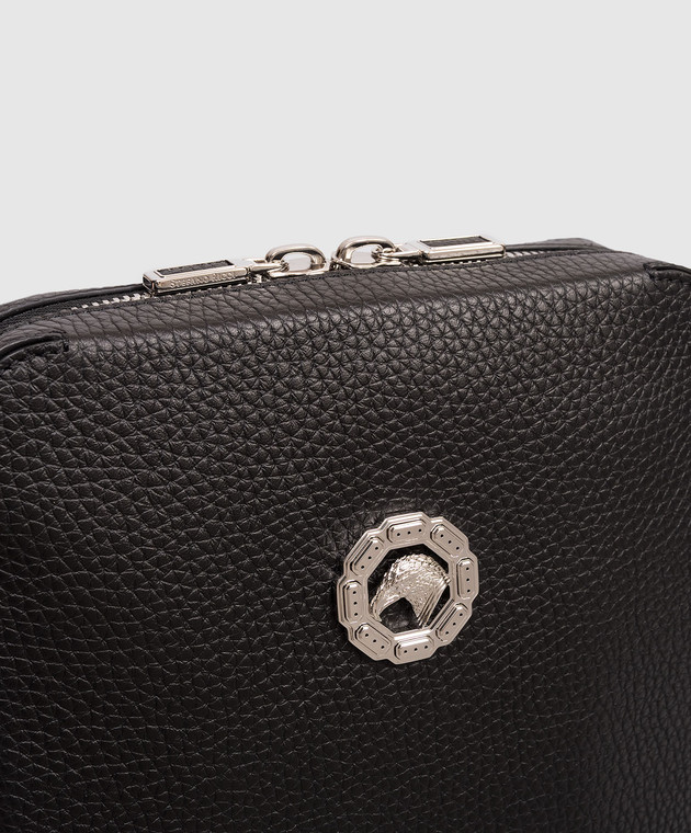 Чорна шкіряна сумка з емблемою у вигляді голови орла