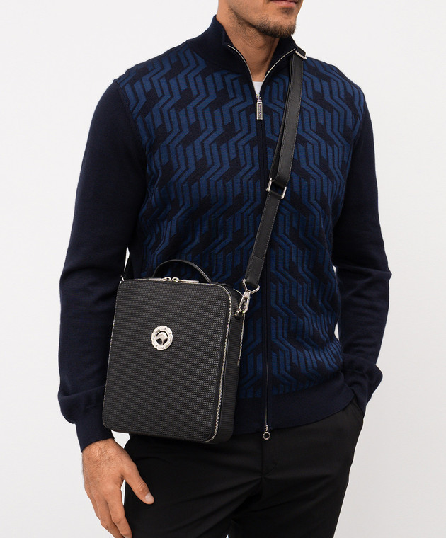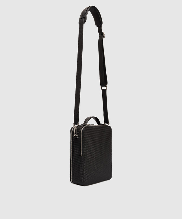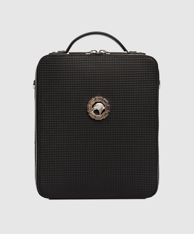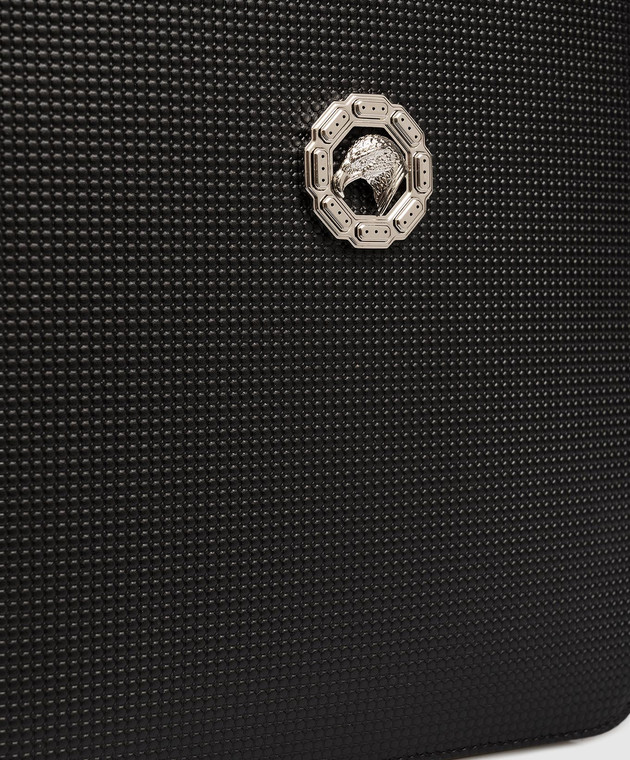 Чорна шкіряна сумка з фактурною емблемою