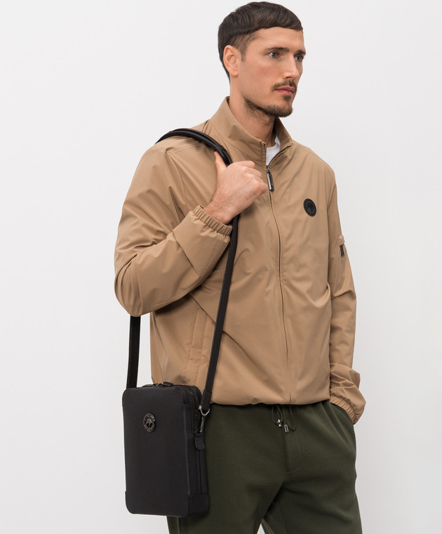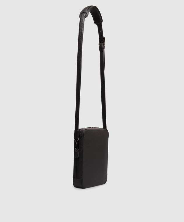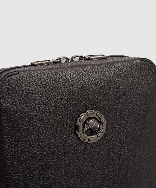 Чорна шкіряна сумка з фактурною емблемою