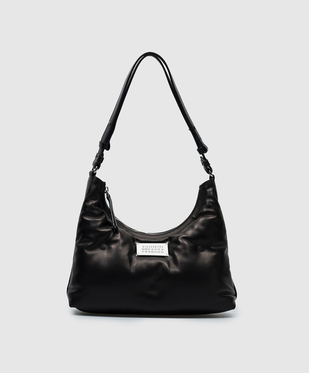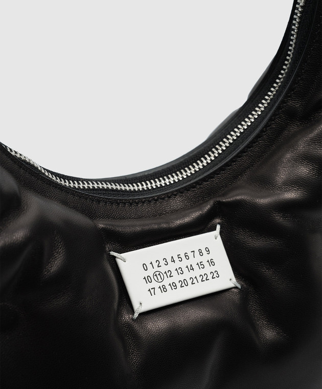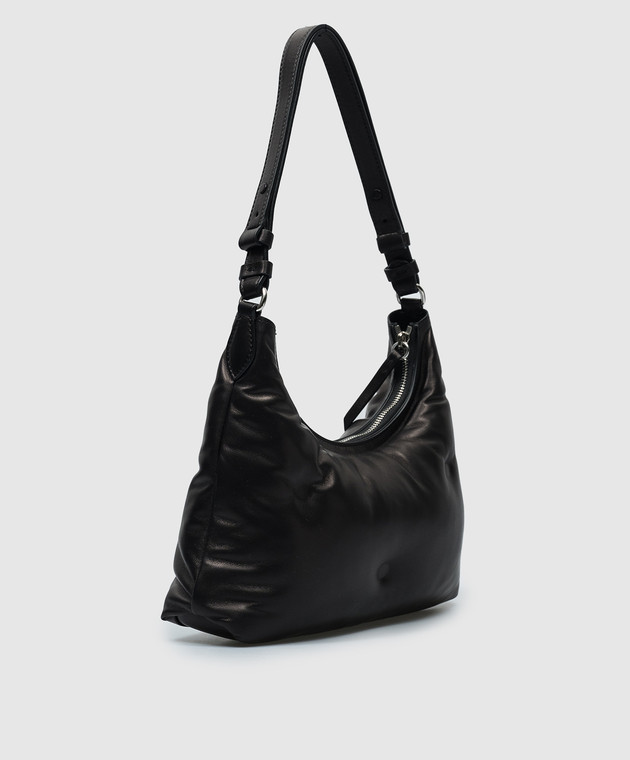 Чорна шкіряна сумка-хобо з патчем логотипа