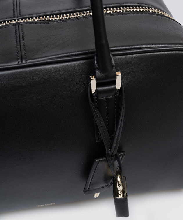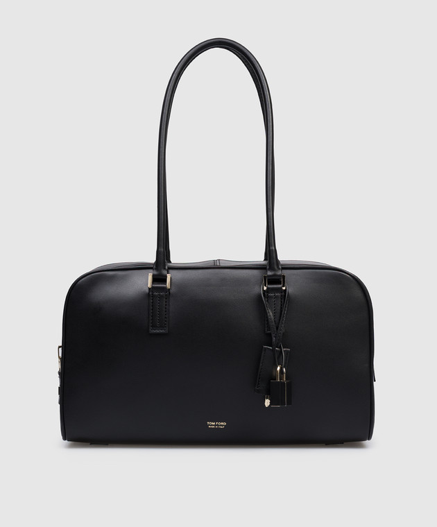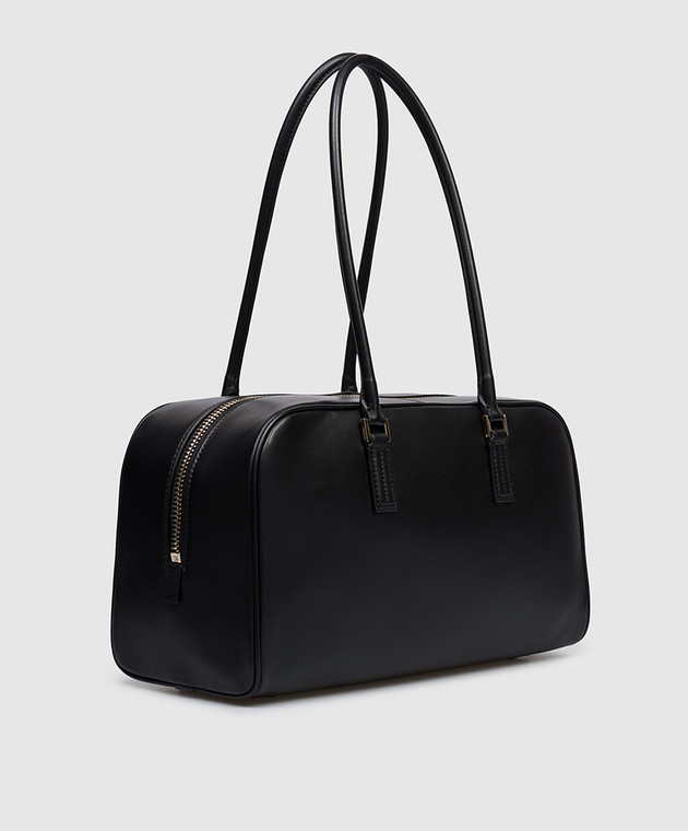Чорна шкіряна сумка з принтом логотипа