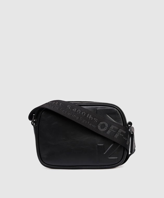 Чорна шкіряна сумка з тисненням логотипа