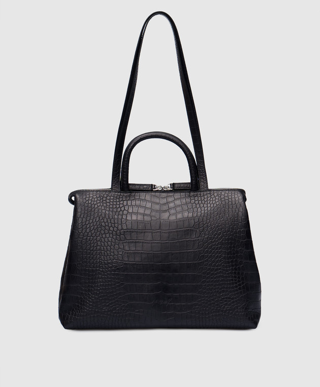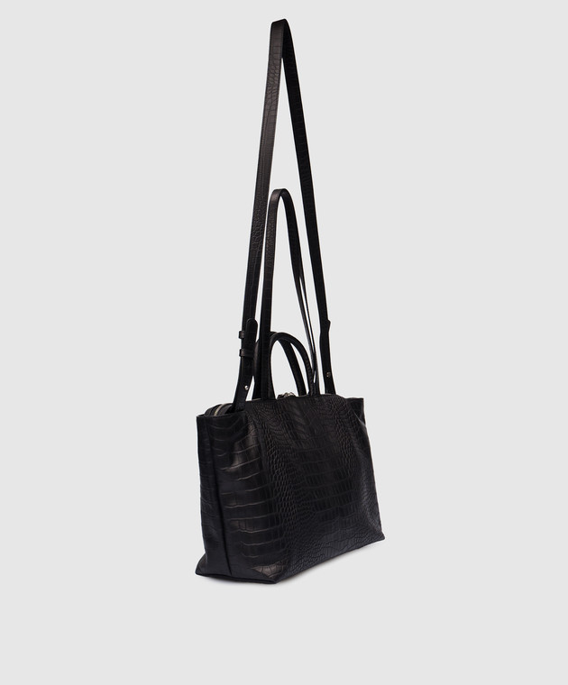 Чорна шкіряна сумка-тоут 4 Dritta з тисненням під шкіру крокодила