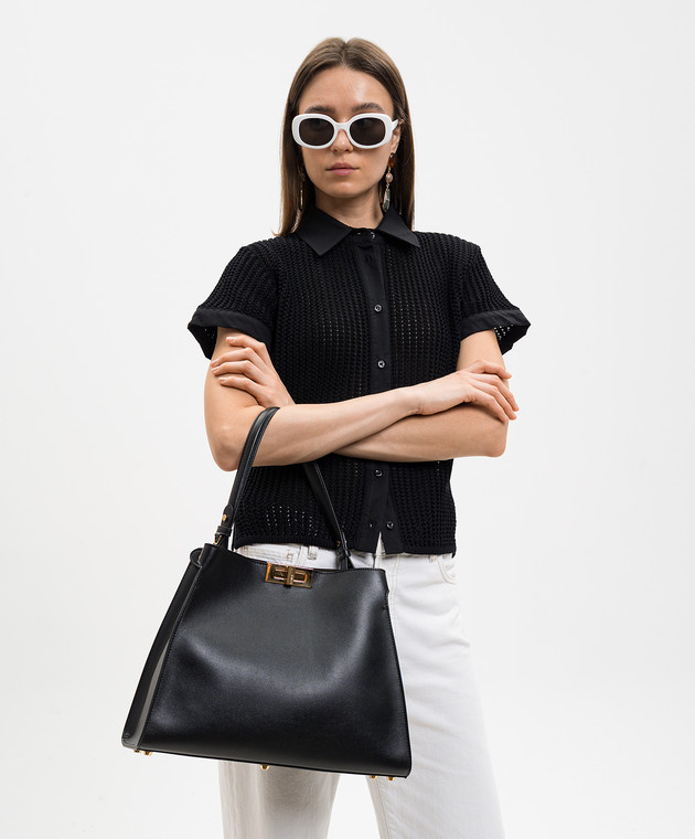 Чорна шкіряна сумка-трапеція Way