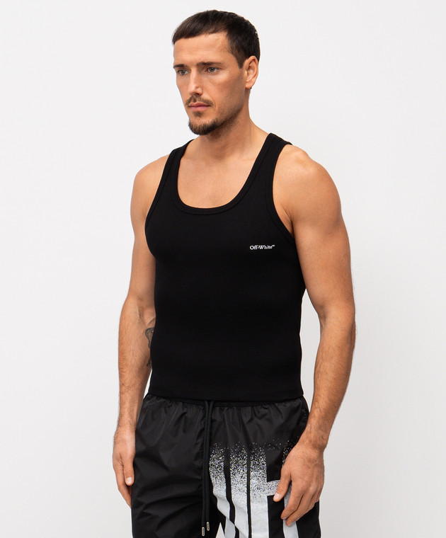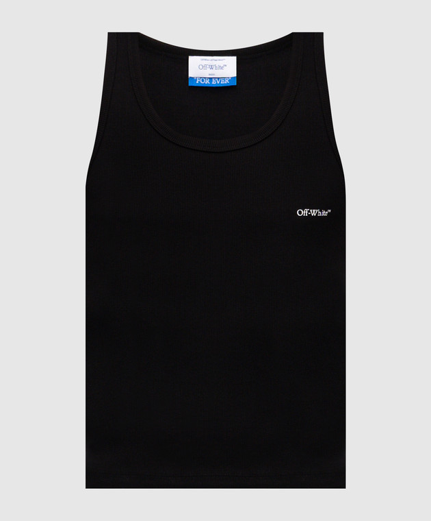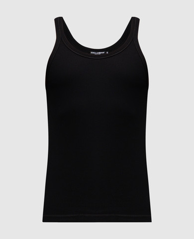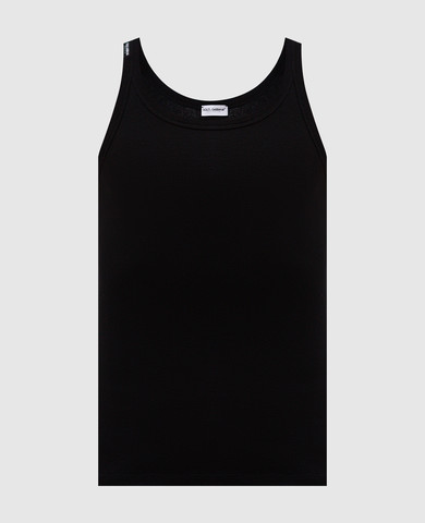 Чорна майка в рубчик з логотипом