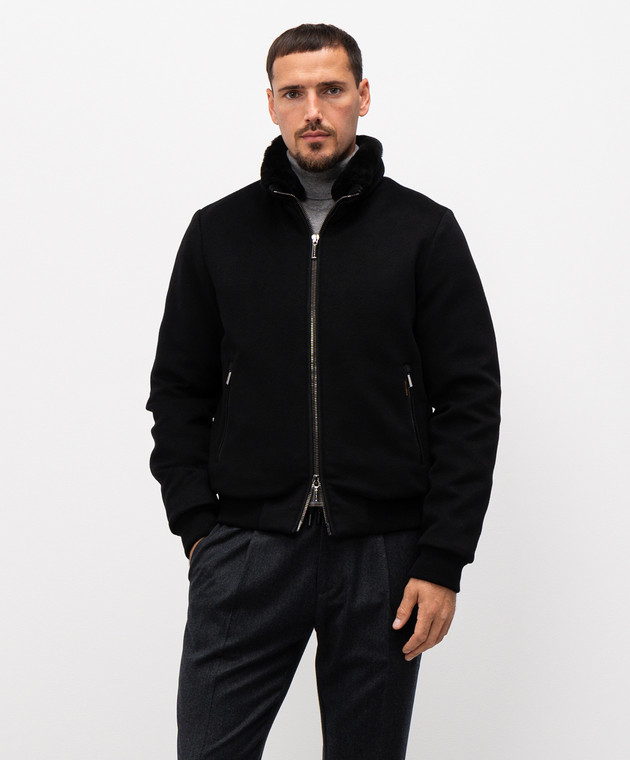 Чорна пухова куртка BELLATI з вовни і кашеміру з хутром