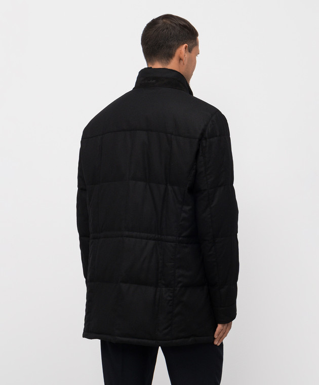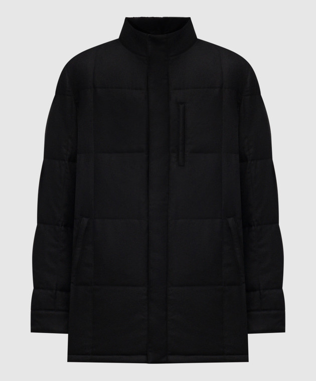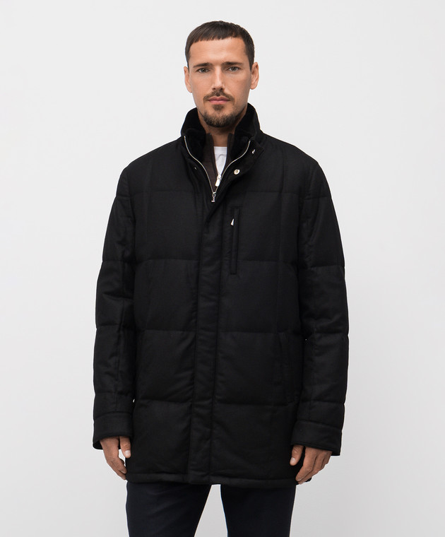 Чорна пухова куртка з вовни і кашеміру з хутром норки