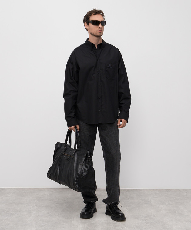 Чорна сорочка з вишивкою логотипа