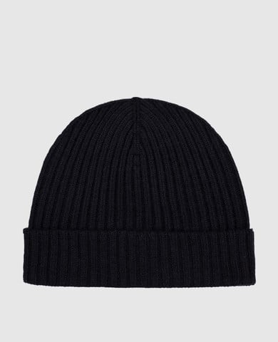 Чорна шапка з кашеміру в рубчик з патчем логотипа