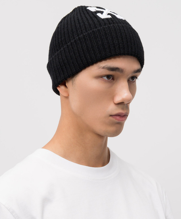 Чорна шапка з вовни з емблемою