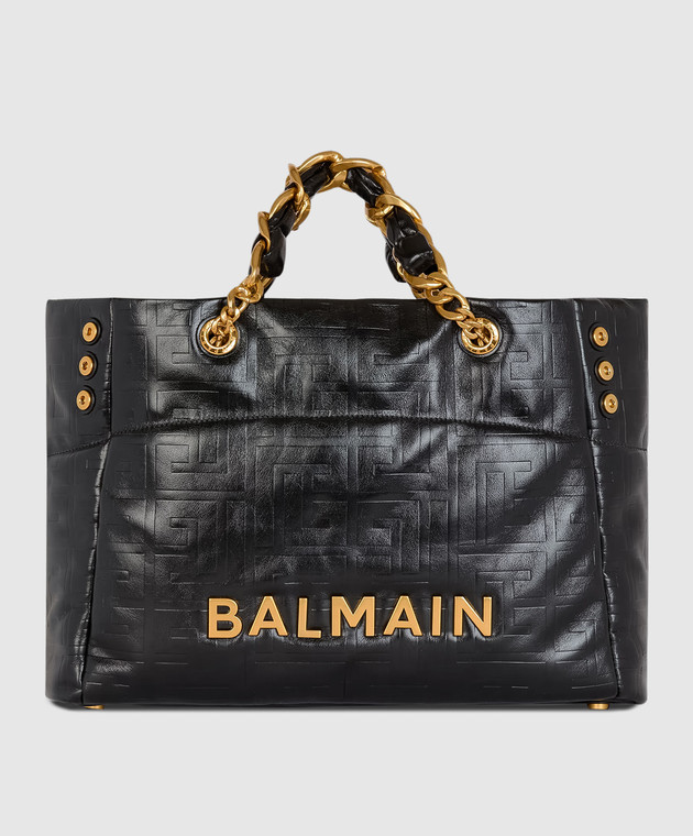 Чорна шіряна сумка-тоут Cabas 1945 з фактурним логотипом