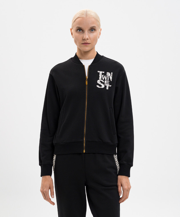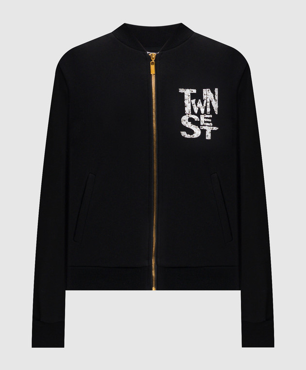 Чорна спортивна куртка з логотипом