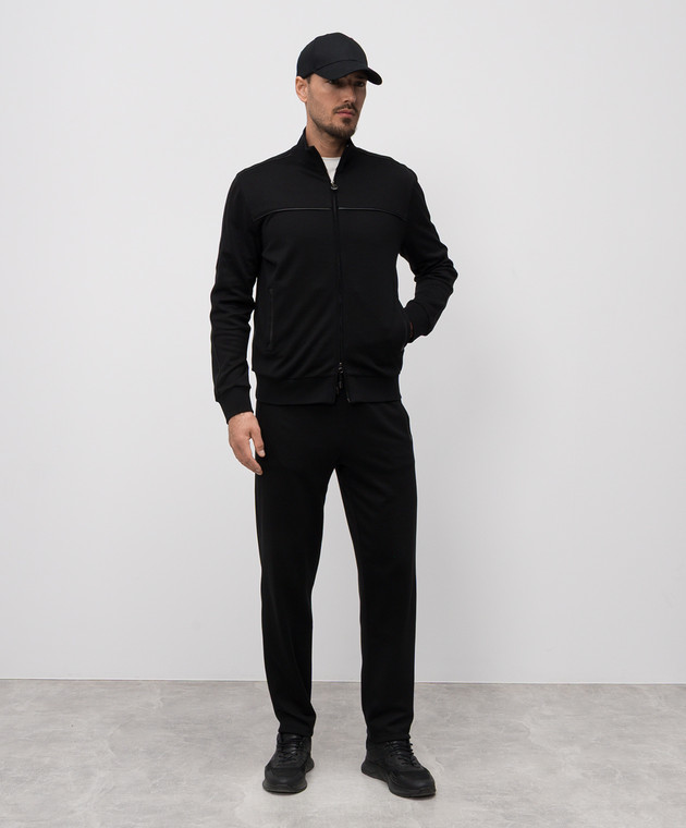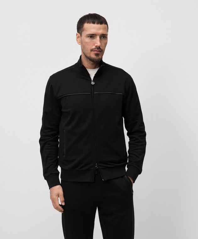 Чорна спортивна куртка з шовком та вставками зі шкіри