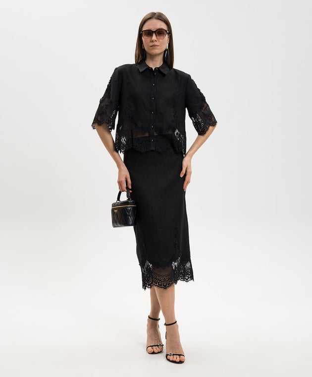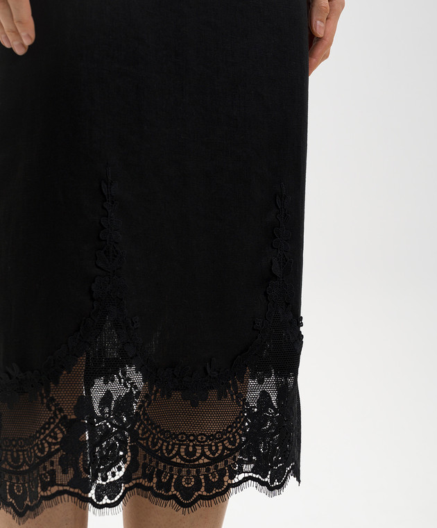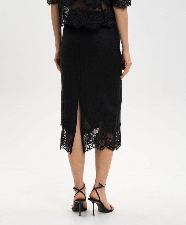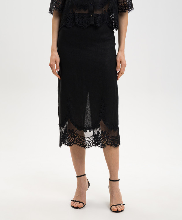 Чорна спідниця міді з льону з мереживом