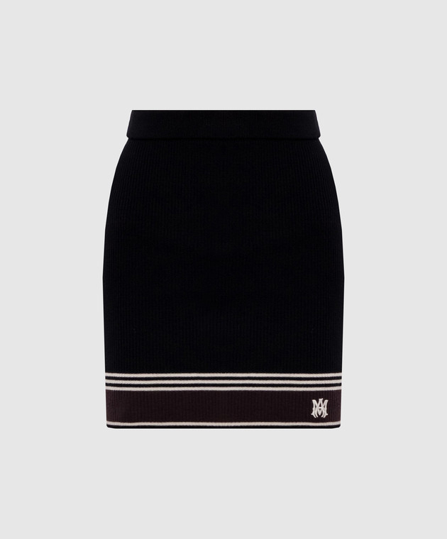 Чорна спідниця міні з вовни в рубчик